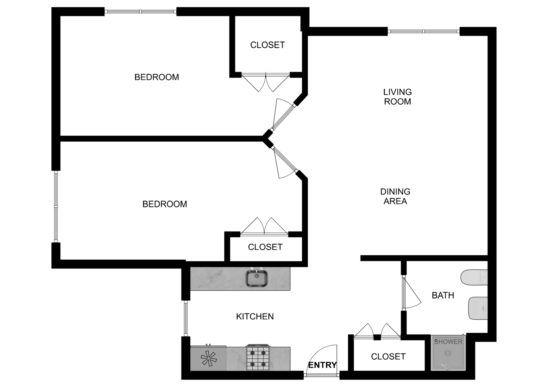 All of our 2 Bedroom units feature splendid finishes*. Averaging 800 SF square feet, each unit is fully equipped with a stove, refrigerator, dishwasher, and heat and air conditioning. At Parkside Manor, you will find a variety of 2 bedroom units to compliment your personal taste.